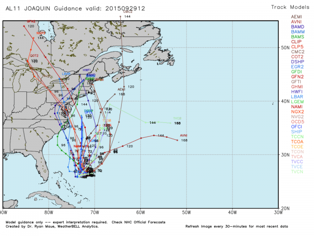 There is high uncertainty regarding the ultimate path of Tropical Storm Joaquin.